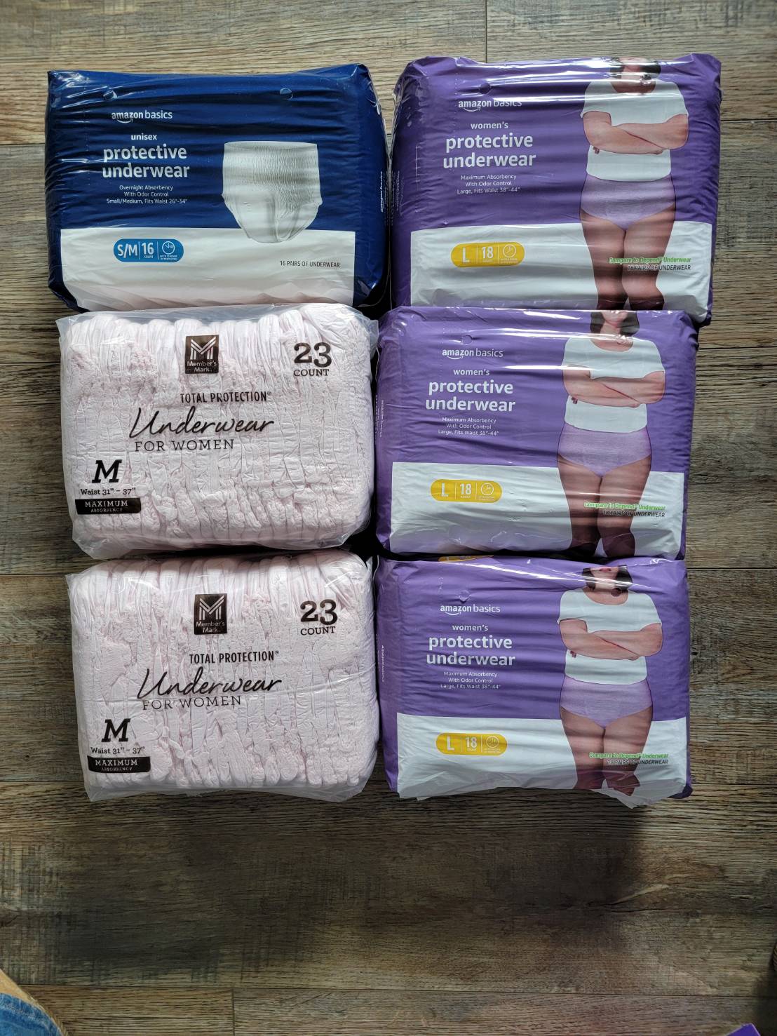 Unopened packages of women’s disposable briefs